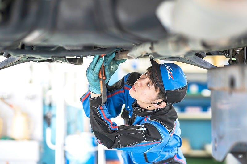 今勉強している基本をしっかり身につけておくことが一番大切だと思います。また、学校に通いながらアルバイトなどをしている人も多いと思いますが、そのアルバイトで接客力などを身につけておくと、就職してからもとても活かせると思います。整備の仕事も、お客様とふれあうことが多いんです。思い切って違う世界に飛び込めば、かわいがってくれる人たちが必ずいます。接客が苦手だと思う人ほど、学生のうちに将来のためと思い頑張ってほしいですね。
